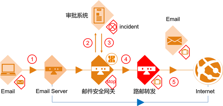 通過在銀行部署郵件安全網關,對外發郵件進行敏感信息掃描,有效避免了敏感信息的數據外泄,同時對外發郵件進行加解密和審批等操作。