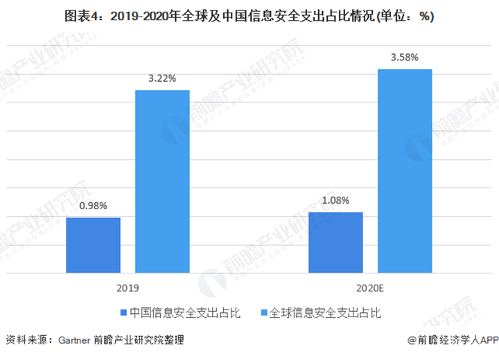 國(guó)內(nèi)信息安全需求不斷增長(zhǎng),但支出占比仍低于全球、且結(jié)構(gòu)偏硬