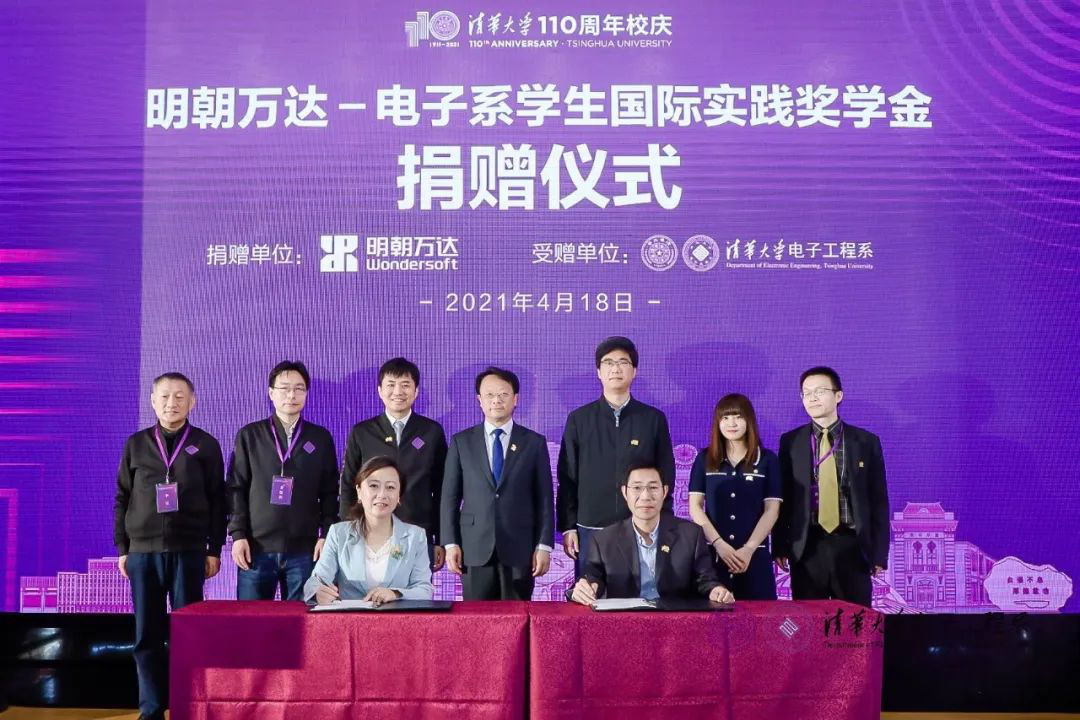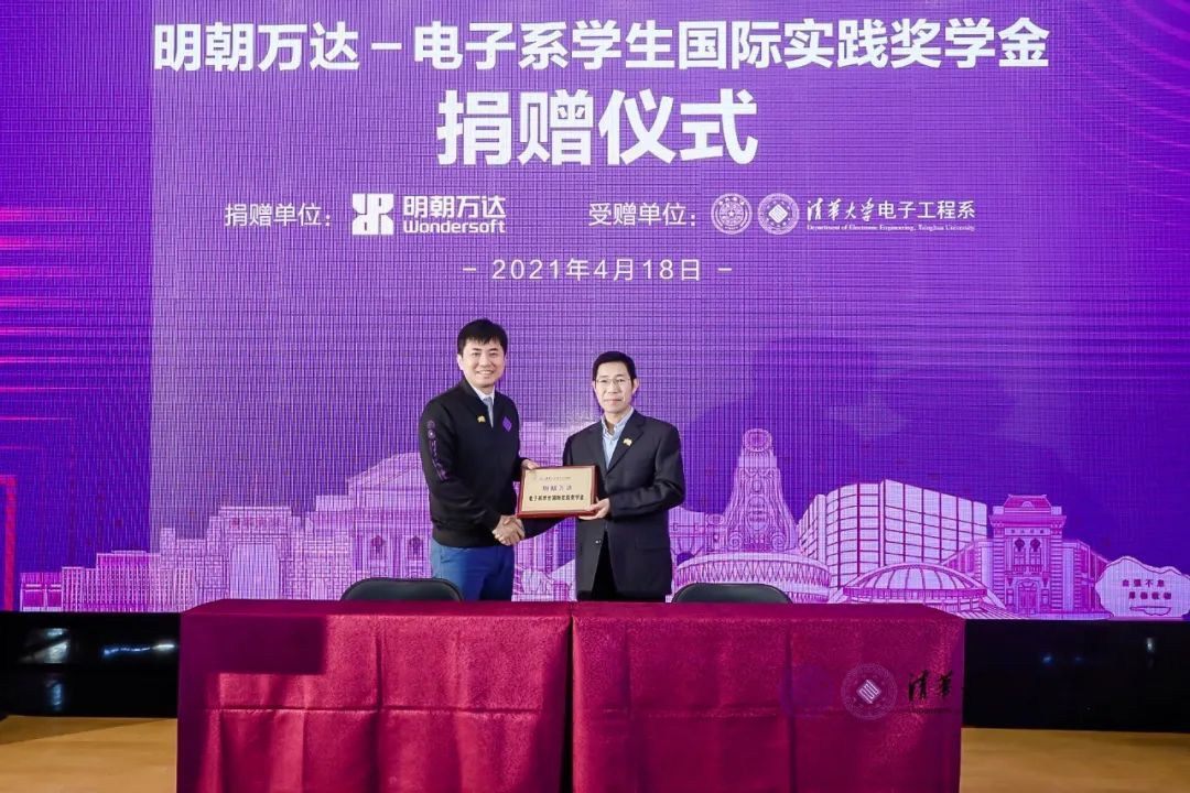 4月18日,明朝萬達-清華大學“電子系學生國際實踐獎學金”捐贈儀式在清華大學舉行。