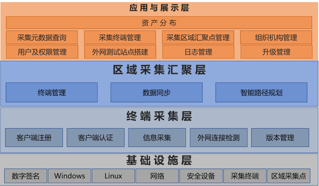 實(shí)現(xiàn)對政府單位各類資產(chǎn)的采集,包括對Windows、Linux操作系統(tǒng)的客戶端采集,同時(shí)對網(wǎng)絡(luò)設(shè)備的其他情況進(jìn)行采集。