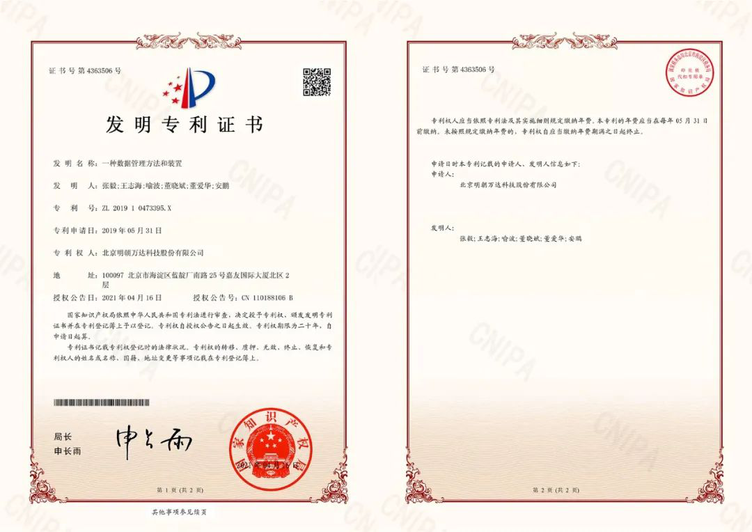 作為中國新一代信息安全技術企業的代表廠商,明朝萬達始終堅持將技術創新作為企業發展的核心推動力,打造了一支由清華大學博士和碩士為骨干力量的研發團隊,支撐起公司強大的自主知識產權體系與核心競爭力。截止目前,公司已申請發明專利300余項,授權專利近140項。