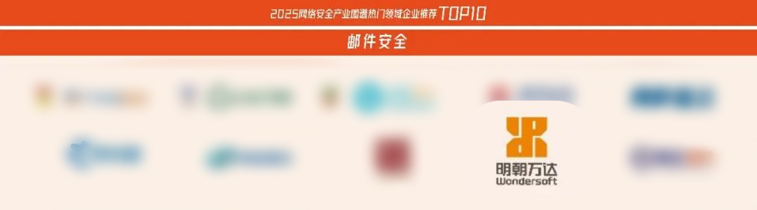 近日,嘶吼安全產業研究院權威發布《嘶吼2025網絡安全產業圖譜》,該機構作為網絡安全領域極具影響力的研究機構,長期致力于洞察產業趨勢、剖析技術革新。此次評選通過深入的市場調研、全面的數據分析及專業的行業洞察,全景式展現網絡安全產業的最新態勢與競爭格局,為從業者提供極具參考價值的行業指南。明朝萬達憑借在網絡安全領域的卓越表現與深厚積累,成功入選圖譜中7大類、22項核心領域,并榮登郵件安全領域熱門企業推薦TOP10,充分彰顯了明朝萬達在行業中的領先地位與全面實力。