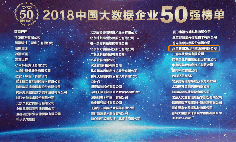 ▲“2018中國大數(shù)據(jù)企業(yè)50強(qiáng)”榜單