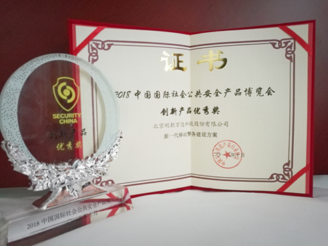 安博會期間,還舉行了2018年中國國際社會公共安全產品博覽會創新產品推介暨頒獎儀式,明朝萬達新一代移動警務平臺建設方案作為公安領域的標桿產品,經過專家評審的層層篩選,最終榮獲創新產品優秀獎,本次獲獎是對明朝萬達在公共安全行業多年深耕及不斷創新發展所取得成績的充分肯定。