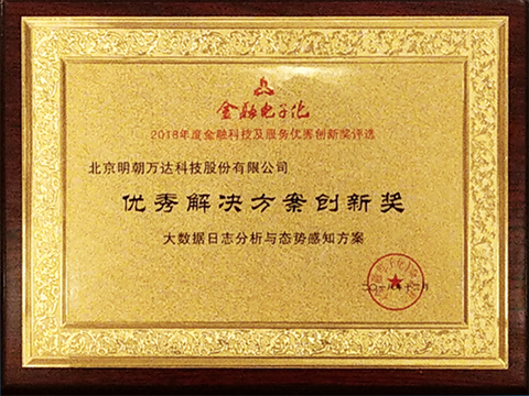 ▲明朝萬達榮獲2018年度“金融科技優秀解決方案創新獎”
