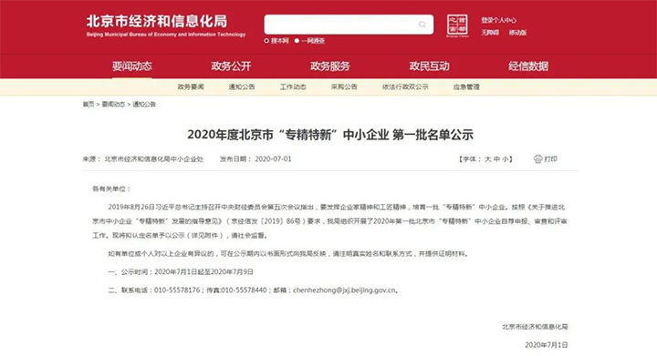 2020年度北京市“專精特新”中小企業 第一批名單公示